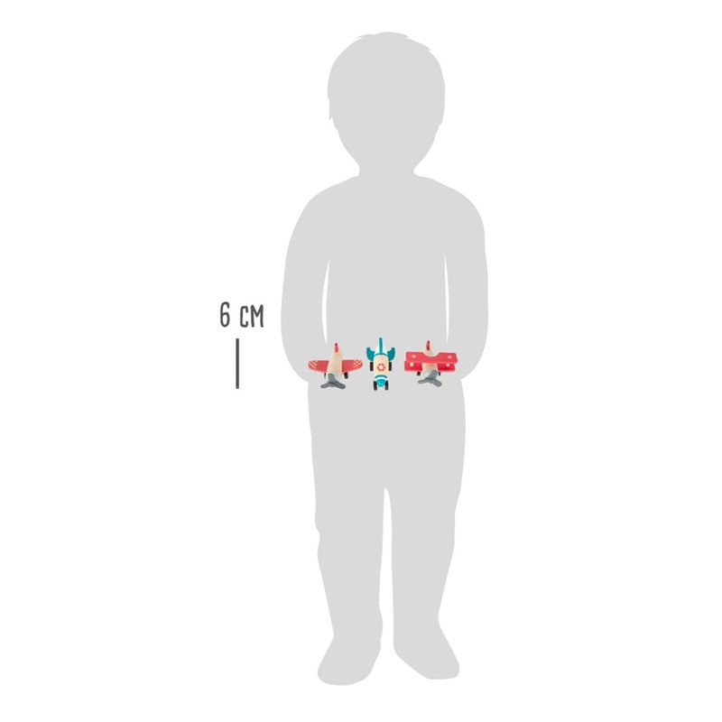 Small Foot Pull Back Plane and Rocket Set with Three Great Aviators, Made of Robust Wood, from 12 Months, 11884 Toy