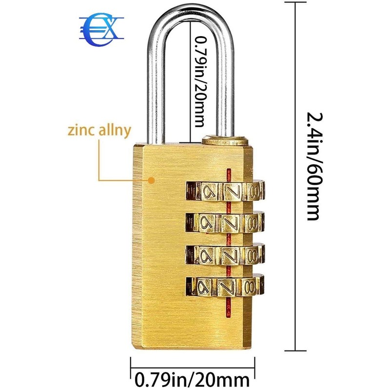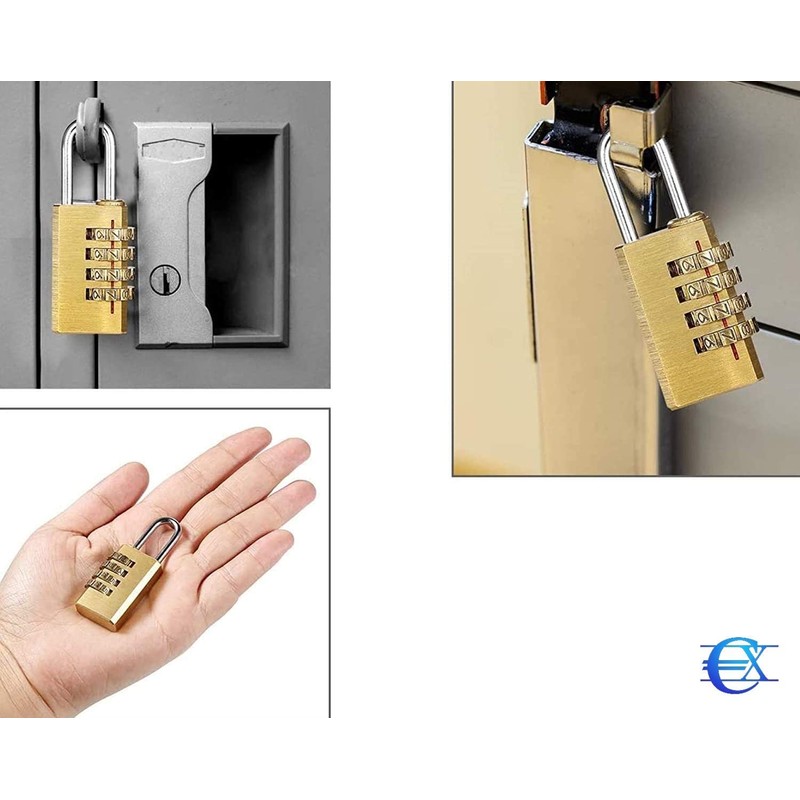 Small Format Combination Lock, 4-Digit Locker Lock with Zinc Alloy Body and Steel Shackle, Padlock for Lockers and Suitcases, EUROXANTY Security Technology, 10 x 24 mm Opening