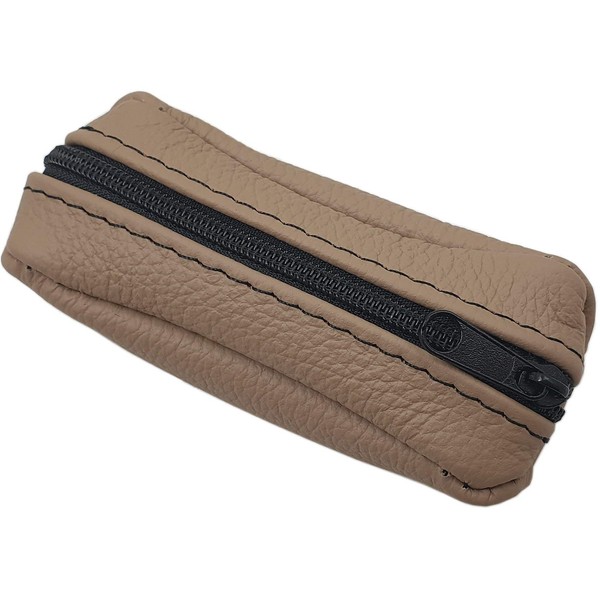 Small Genuine Leather Key Bag 1 Compartment Made in EU, dark beige, Unit size, Minimal