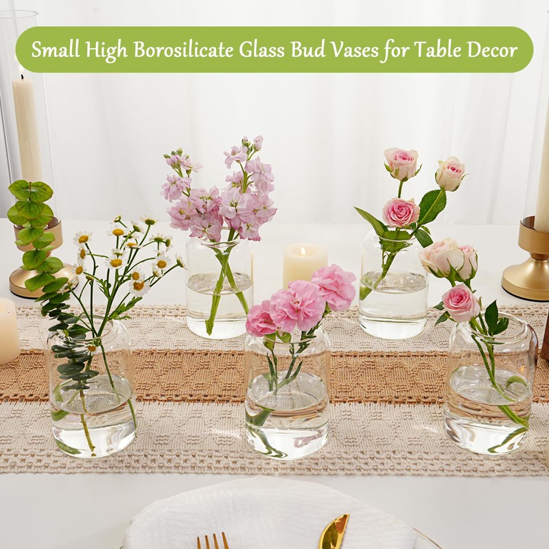• Decorative Bud Vases for Table Setting - Clear glass vases are functional and stylish. Small vase design is perfect for creating intimate centerpieces or accents on dining tables, coffee tables, or even windowsills. Mini vases for flowers add a minimalist touch and are suitable for modern decor, rustic themes, or elegant occasions