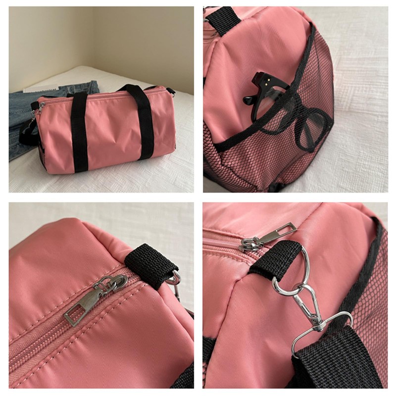 Small Gym Bag, Gym Bag Small, Small Holdall, Waterpoof Travel Bag with Multiple Pockets, Adjustable Hand Strap Small Handbag Travel Duffle Bag for Fitness Travel Shopping Weekend(Pink) Durable and Waterproof Gym Bag: The travel duffle bag made of high quality materials, which is durable, tear-resistant. Robust metal zippers are smoothness and not easily stuck, withstand the wear and tear of regular use. This weekender bag is very well constructed and sturdy, it can keep its shape even when it is empty. Versatile for Any Activity: Whether heading to the small gym bag, yoga class, or a weekend getaway, this bag adapts seamlesslyz. Its sleek design makes it suitable for workouts, travel, or everyday use, blending functionality with style. Various Carrying Options: This gym bags can be carried in 4 different ways with single shoulder, diagonal span, hold by dual handles or strap on luggage. Choose different ways of carrying according to your personal preferences, which is simple and convenient. Compact Yet Spacious: Engineered for portability, the bag is lightweight and easy to carry, yet surprisingly roomy. Multiple compartments help organize essentials efficiently, making it ideal for on-the-go fitness enthusiasts. Multifunctional Holdall Bag: The sports bag is ultra light and foldable for easy transport, suitable for whether man or women. Perfect used as a swim bag, weekend bag, gym bag, carry on bag, travel overnight bag, duffle bag, holdall bag, business trip flight bag etc. carry to the gym, swimming pool, sports field, travel, etc.