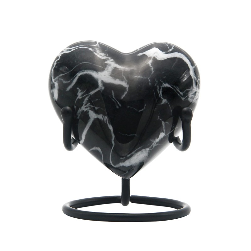 Small Heart Urns for Human Ashes - Black Mini Keepsake Urn for Ashes - Urnes Funéraires Adultes - Urns for Adult Men, Women - Cremation Urn for Loved ones Memory - Premium Stand Included