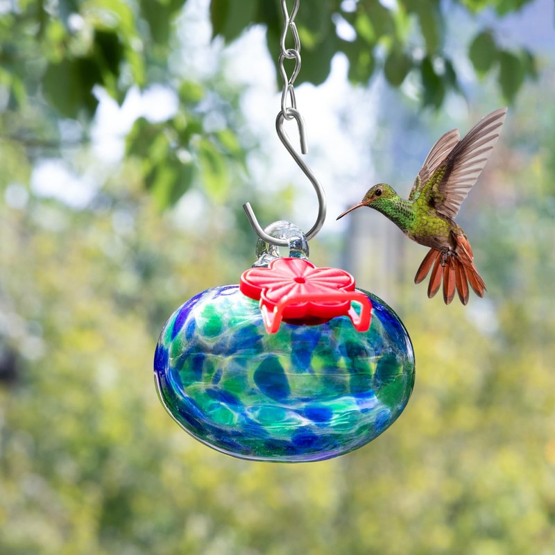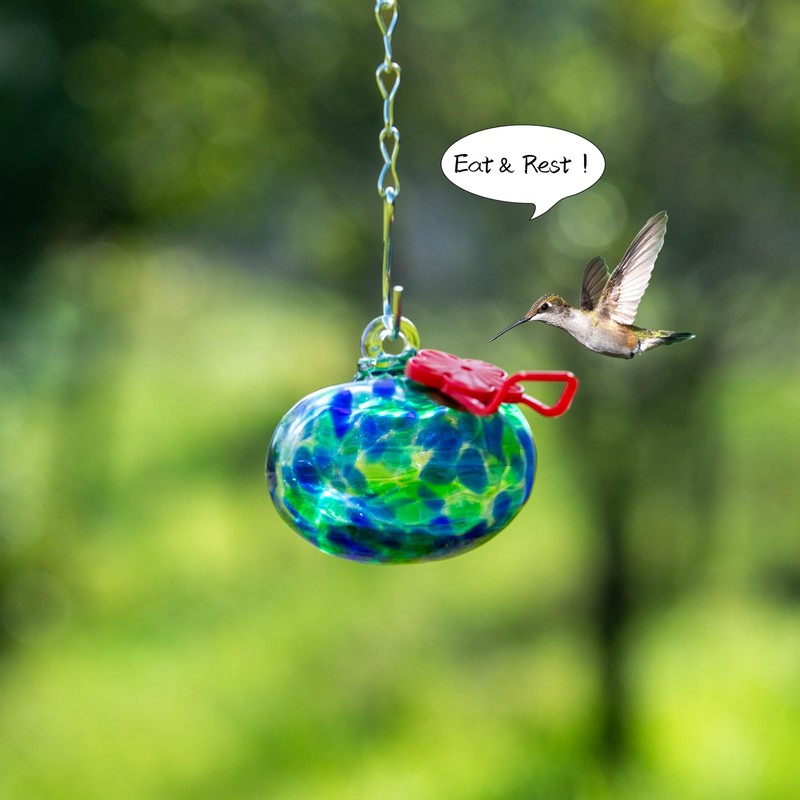 - Hand Blown Glass Hummingbird Feeder:Each feeder glass ball is hand-blown by skilled artisans, so each one is unique. The brilliant colors and patterns are not only a feast for the eyes, but also can attract more hummingbirds to your yard and never fades.