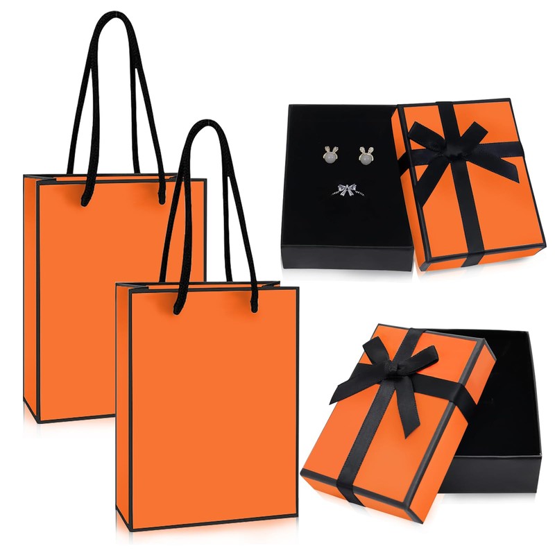 - Package Includes: You will receive 2 orange gift boxs with a size of 9 x 7 x 3 cm / 3.6 x 2.8 x 1.2 inch, 2pcs orange gift bags measure 16 x 12 x 5.8 cm / 6.3 x 4.7 x 2.3 inch (LxWxH).