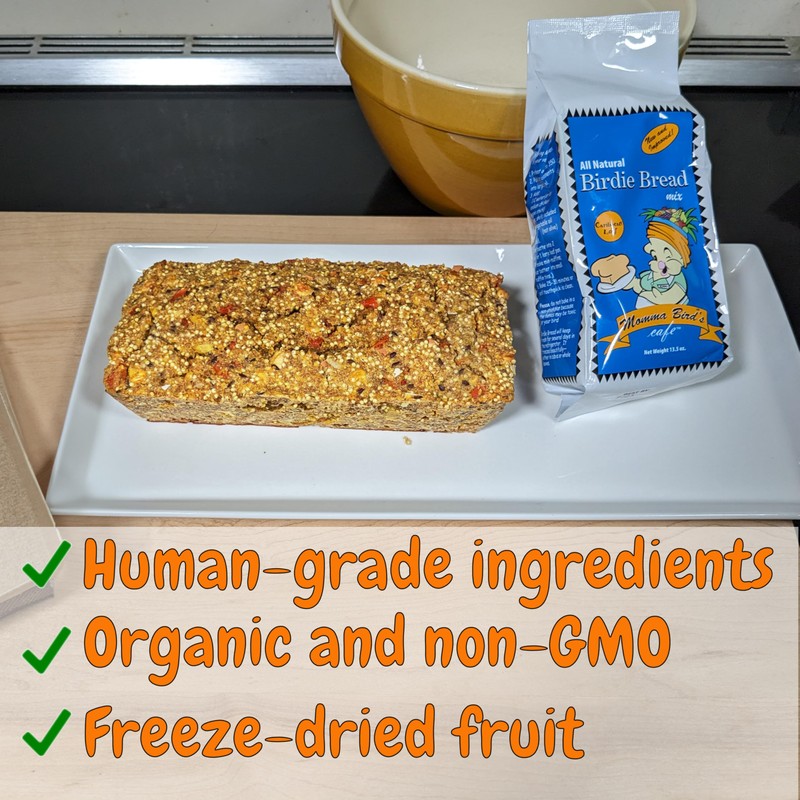 Small Joys Birdie Bread Mix for Parrots, Momma Bird's Cafe Organic Parrot Bird Bread Mix containing Human-Grade Ingredients Bird-Safe Pan