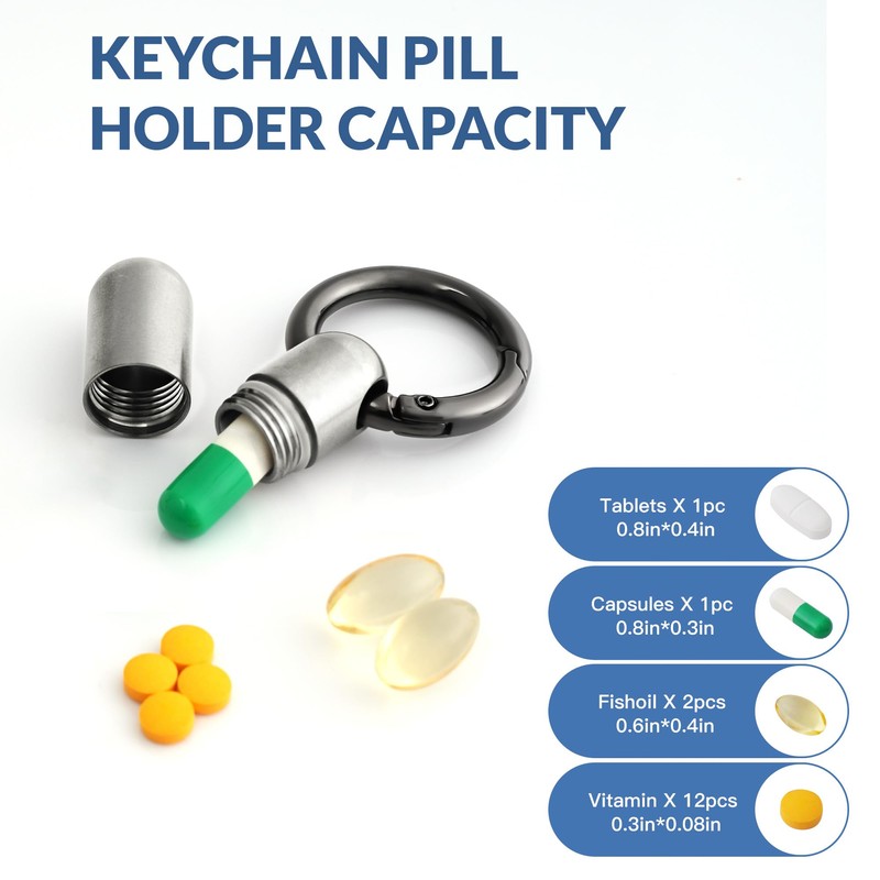 - PERFECT PILL HOLDER: Titanium alloy keychain pill case is light, durable, corrosion-resistant, non-toxic for direct pill contact, safe storage.