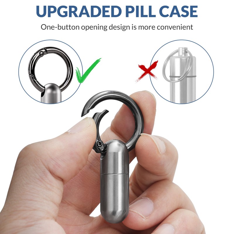 - INCLUDED ITEMS: 1× extended upgrade titanium pill holder keychain+1×save effort keyrings,2×rubber O-ring