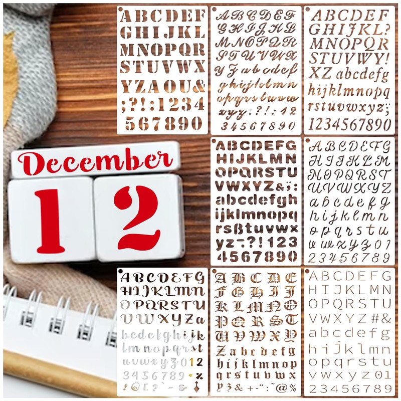 - Delicate design: You will receive 8pcs 11.8 x 8.26 inch stencils with calligraphy old english letter stencils 1/2 inch, small number and a organize storage ring, charming and unique designs for decorating to create an artistic atmosphere.