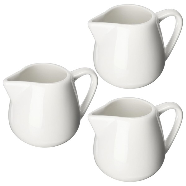 - This set of 3 white porcelain ceramic jugs, sold by zeeooil, is made of premium quality material. It is sturdy, long-lasting and easy to use. The displayed pictures and text descriptions are only applicable to our ceramic milk jugs sold by zeeooil!