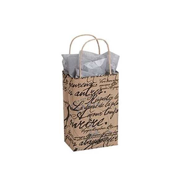 Small Paris Script Paper Shopping Bag 5 ¼ x 3 ¼ x 8 ¾ Inches - Count of 100