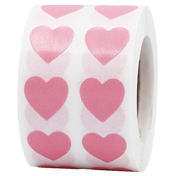 These are our small pink heart stickers which are die cut in the shape of a 12.7mm (1/2 Inch) heart. These are very tiny and can be measured from top to bottom and left to right at 12.7mm (0.5 inch). This is about the size of a dime. They are tiny enough and beautiful for use in many purposes. There are 1,000 pink hearts on a roll. We do add about 20-30 extra to make up for the little white sticker we use to hold the roll together with.