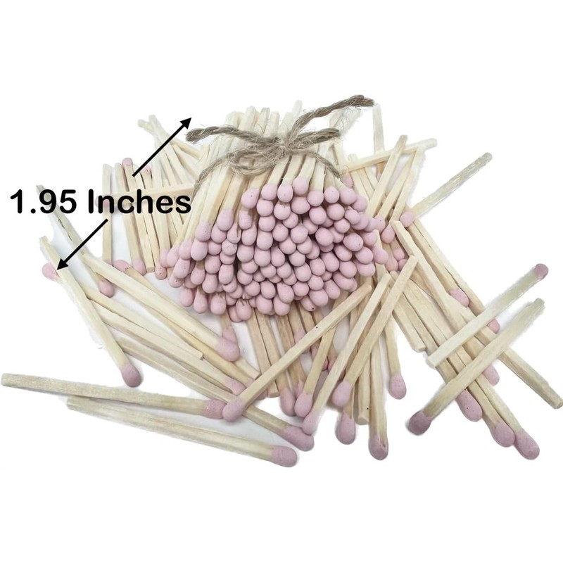 Small Pink Matches, Pack of 100 1.95" Natural Wood, with Striking Pad. Match Jar Refill, Matches for Candles, Wedding Matches (Pink)