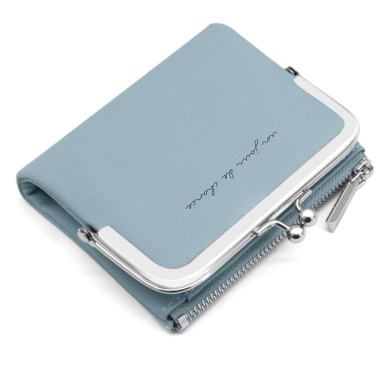 Small Purses for Women, Wallet for Woman with Coin Zipper Pocket Women's Wallet PU Leather Small Ladies Purse Small Bifold Compact Womens Wallet with 8 Card Slots and Multiple Compartment (Blue)