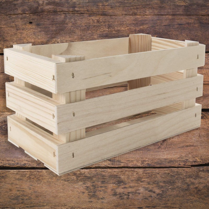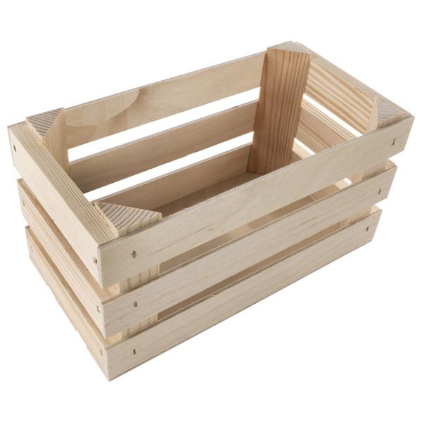 Small Rectangular Wooden Display Crate | 23.5 x 12 x 12 cm | Presentation Storage Box | Plain Unpainted & Untreated Pine for Craft