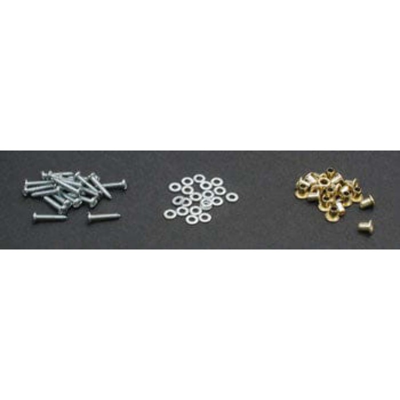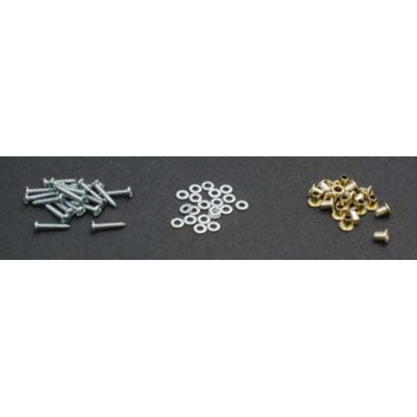 Dubro Servo Mounting Hardware kit includes 20 sheet metal screws, 20 flat washers, and 20 spacers, enough for five servos.