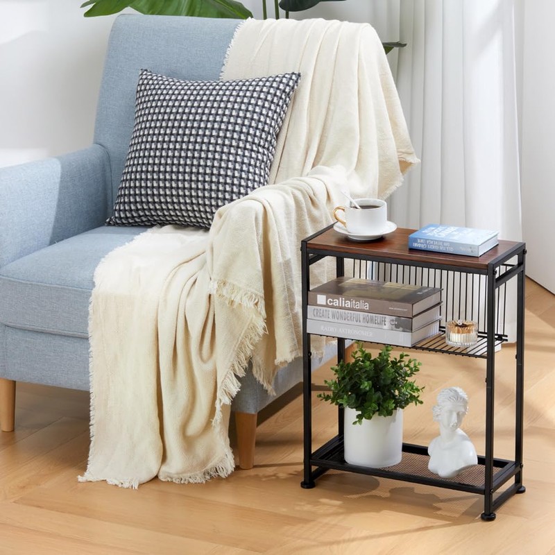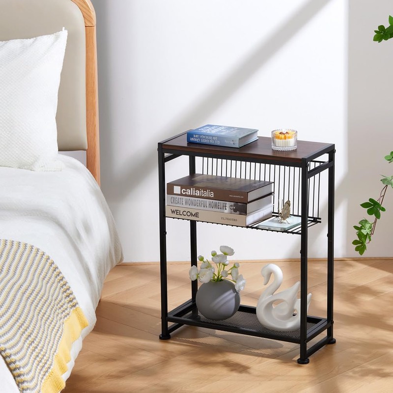 - 【Strong Metal Frame & Fine Metal Mesh Layer】The thickened metal frame makes the side table have a good load-bearing capacity, and the spray paint anti-rust treatment makes the magazine side table more durable. The fine metal grid at the bottom not only increases the storage capacity of the product, but also further enhances the stability of the product.