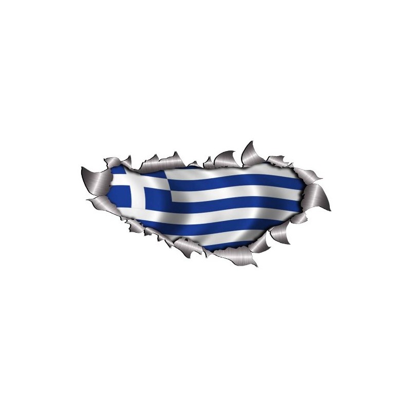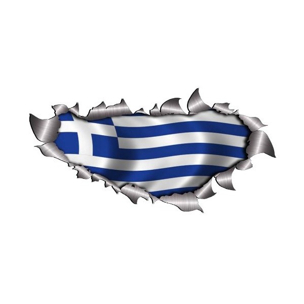 Small Single Flag Of Greece Metal Rip Open Sticker