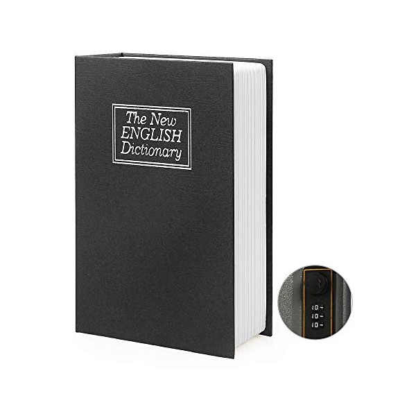 Small Sized Diversion Book Safe Storage Box, Dictionary Secret Safe Can with Security Combination Lock/Key, Diversion Book Hidden Safe (Combination, Black dictionary)