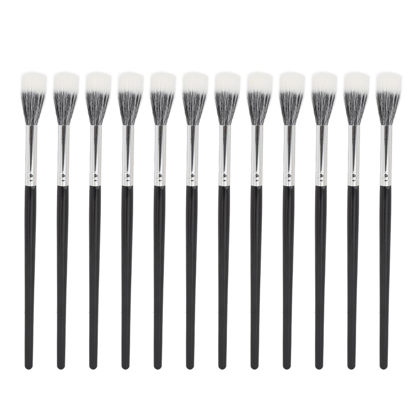 Small Stipple Brush, 12Pcs Dual Layers Bristles Cosmetic Brush Set Comfortable Handle Soft Bristles Aluminum Tube Connector for Blush