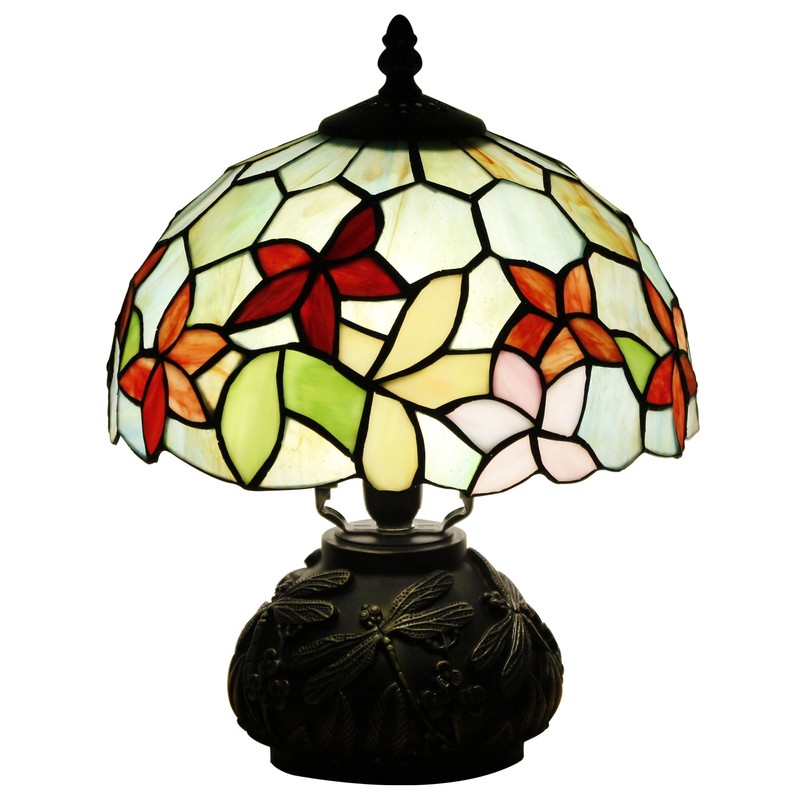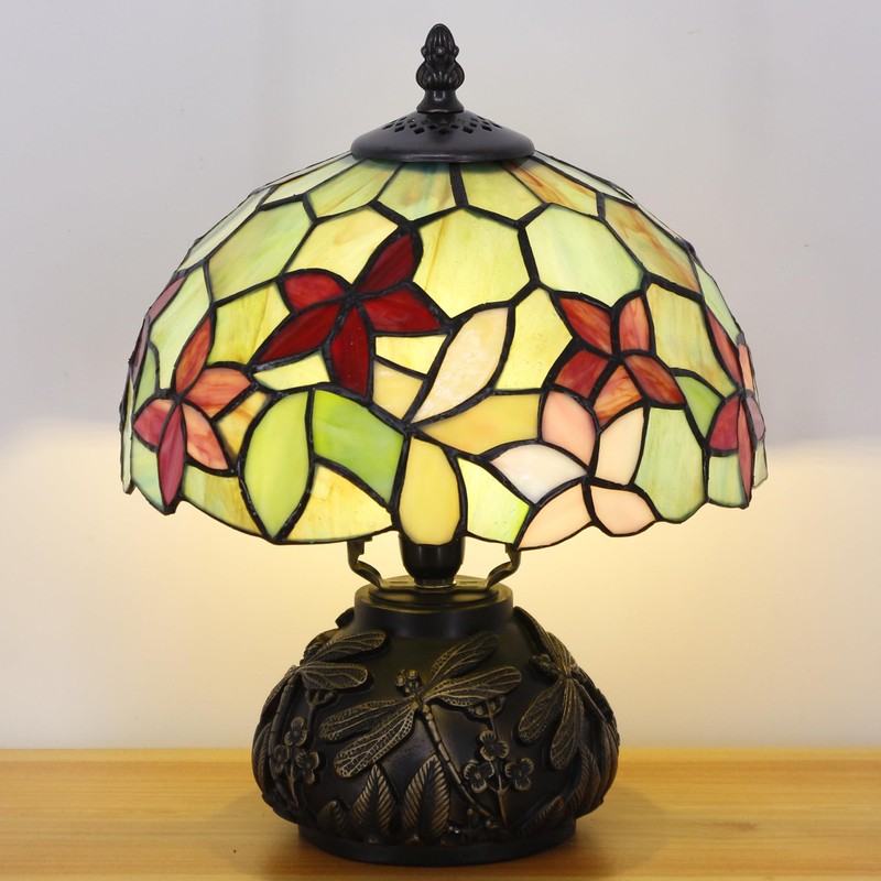 Small Tiffany Table Lamp Red Green Flowers Style Stained Glass Desk Lamp 10X1...