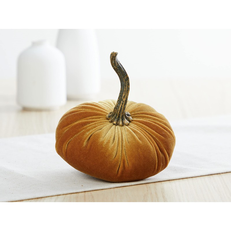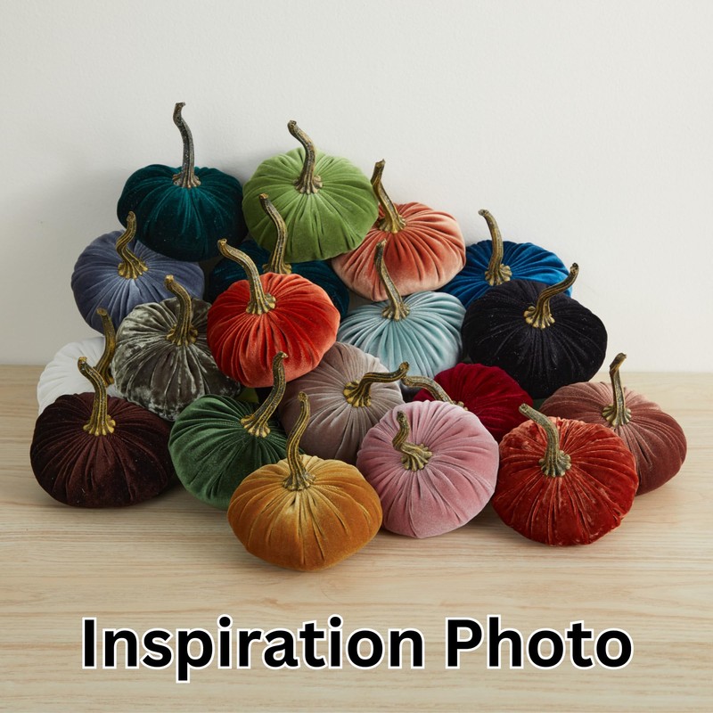 Small velvet pumpkins set of 4, elegant gift set for friend, new apartment, autumn shelf sitter, Thanksgiving tabletop, fern green entryway decor (Rust Fern Gold Bronze)
