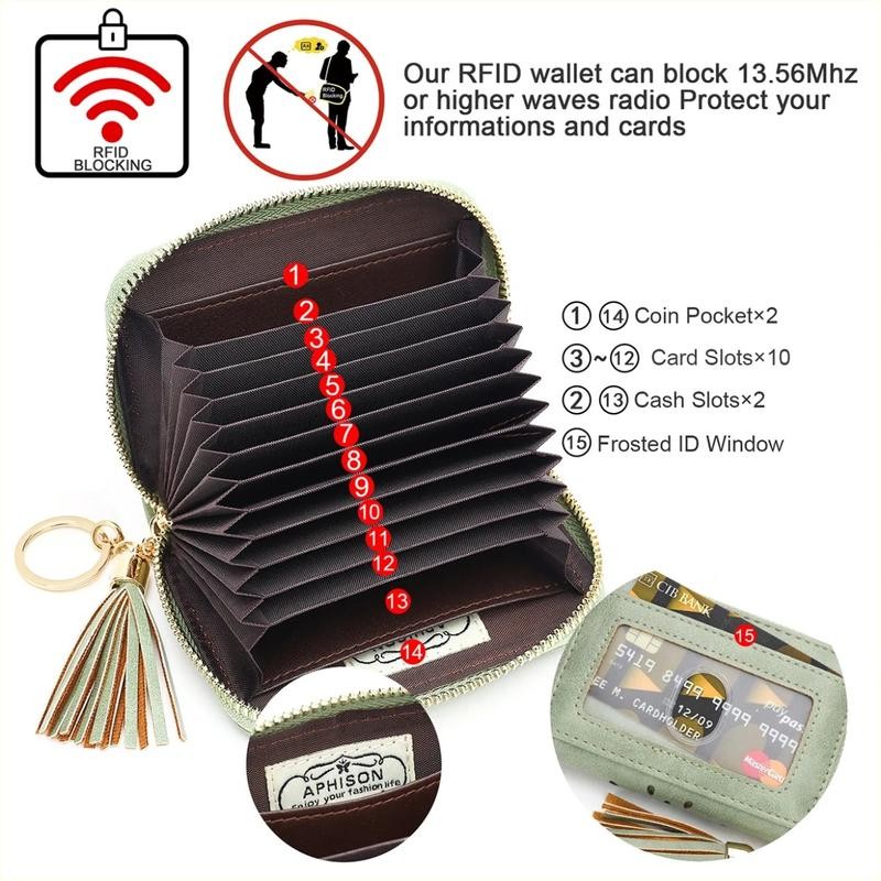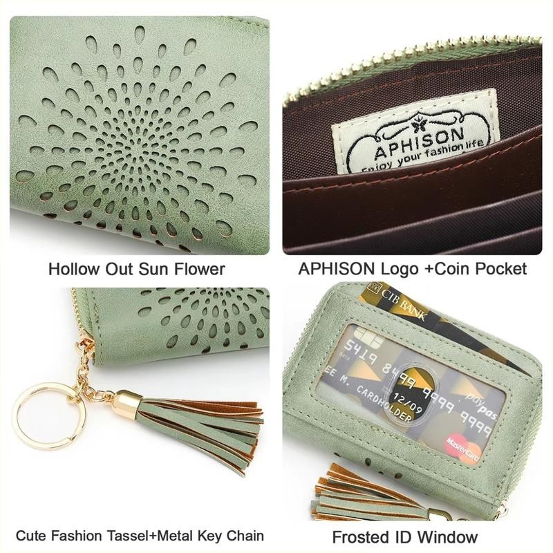 Small Wallet Women RFiD Blocking Card Holder 1 Piece with Keychain Cash Slot and ID Card case - Color: Red