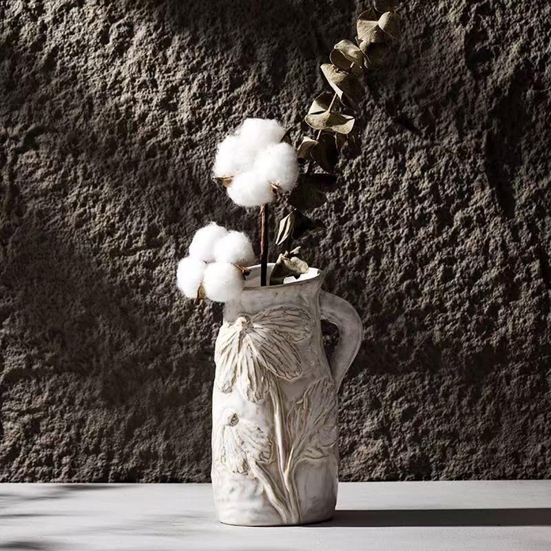 Small White Ceramic Vase Modern Wabi Sabi Ceramic Flower Vase,Unique Art Vases for Flowers with Handle,Handmade Boho Style Decorative Vase for Home Decor