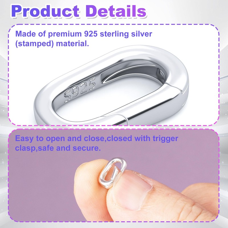 - Size: The 925 sterling silver necklace shortener clasp measures 0.46×0.29in/11.6×7.4mm.