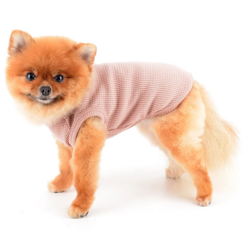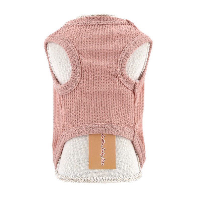 SMALLLEE_LUCKY_STORE Cute Bear Waffle Knit Tank Top Puppy T-shirt for Small Dogs Cats Boy Girl Stretchy Tee Shirt Vest Yorkie Chihuahua Pet Summer Clothes,Pink,M