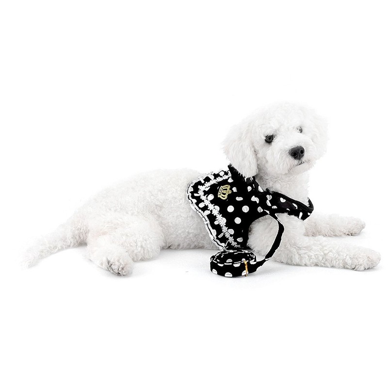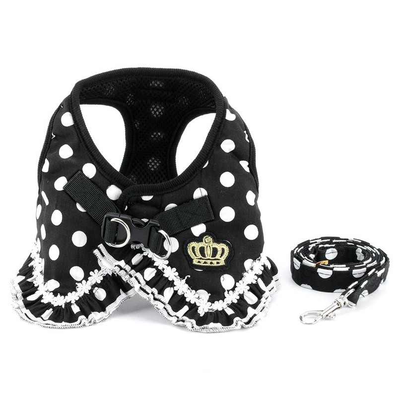 SMALLLEE_LUCKY_STORE No Pull Polka Dot Small Dog Puppy Cat Harness with Crown, Soft Mesh Padded Vest Harness and Leash Set for Girls,Black M