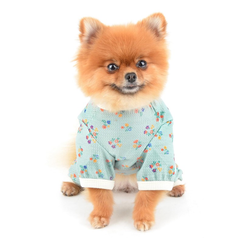 1. Adorable Floral Waffle Knit Design: These pajamas feature a cute floral waffle knit pattern, making your pet look charming and stylish at bedtime.