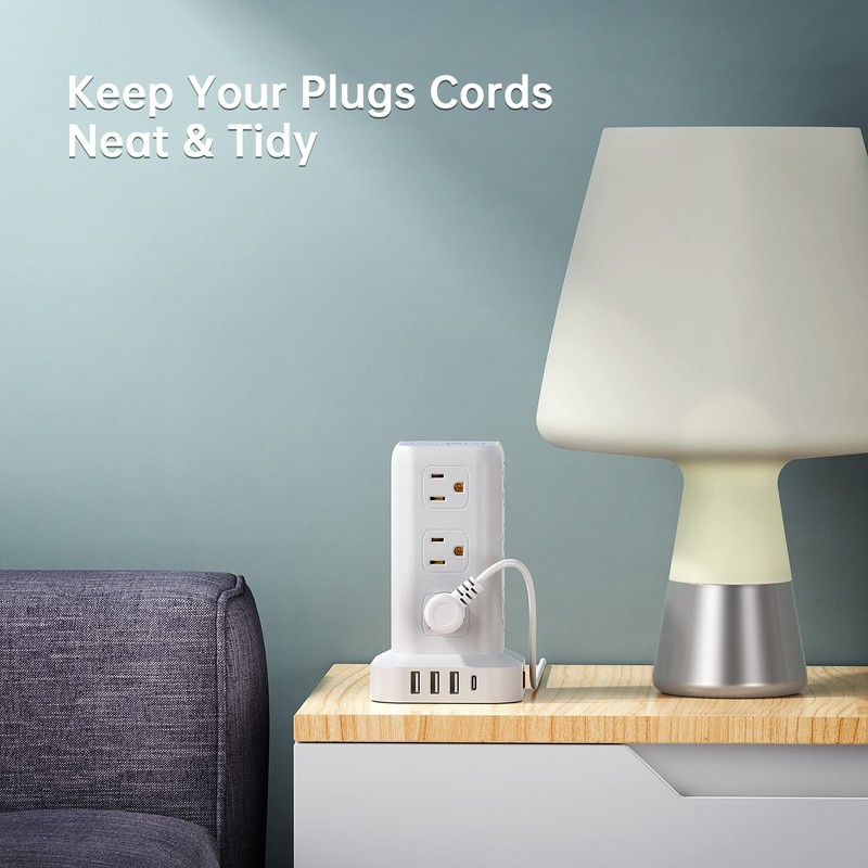 - 【Surge Protection & Overload Protection】- The surge protector tower with overload protection protects against spikes and fluctuations. The reset/off switch with integrated circuit breaker for overload protection of all outlets. This power strip has overload protection, short-circuit protection, over current protection, over-voltage protection and overheating protection. It will automatically cut power to protect connected devices when voltage surge is overwhelming.