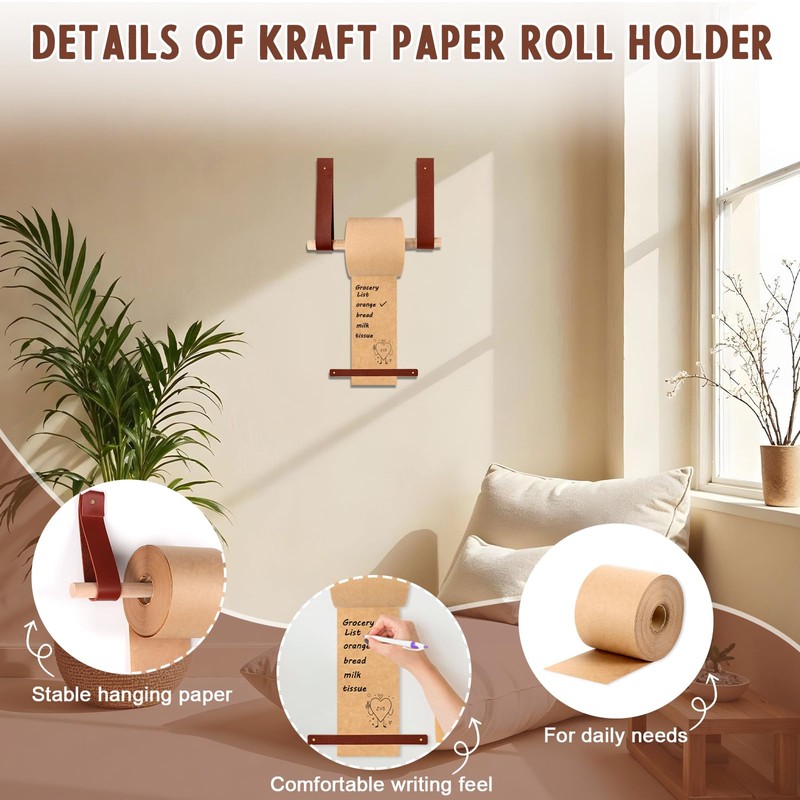 - All-in-One Suite: Ultimate Convenience:This kraft note paper roll holder includes 1 roll of 3-inch wide wall-mounted kraft paper, 1 wooden roll holder, 4 leather straps, and a set of 6 screws. All components are perfectly combined, not only facilitating the storage of paper rolls but also simplifying the usage process. Installation is easy and quick, transforming your wall into a multifunctional message board that adds to your home decor while providing more practical functions.