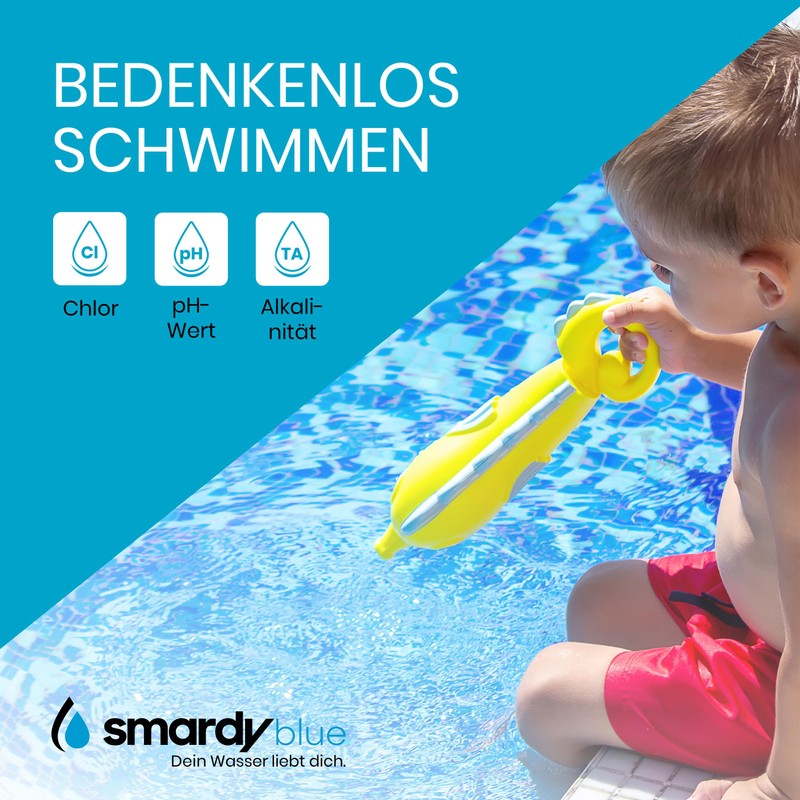 Simply take the SMARDY test strips and hold in water for 2 seconds and after approx. 60 seconds you can use a colour scale to determine the values of your water.