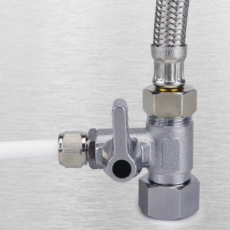• Connect your SBS refrigerator, water filter or osmosis system to the cold water pipe, e.g. under the sink through the shut-off valve for 1/4 inch for plastic hoses.