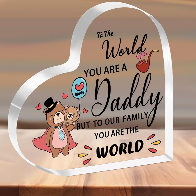 SMARGO Daddy Gifts from Daughter Son Heart-Shaped Acrylic Plaque Gifts for Daddy Best Daddy Gifts from Daughter Son Birthday Christmas Father's Day Gifts for Daddy