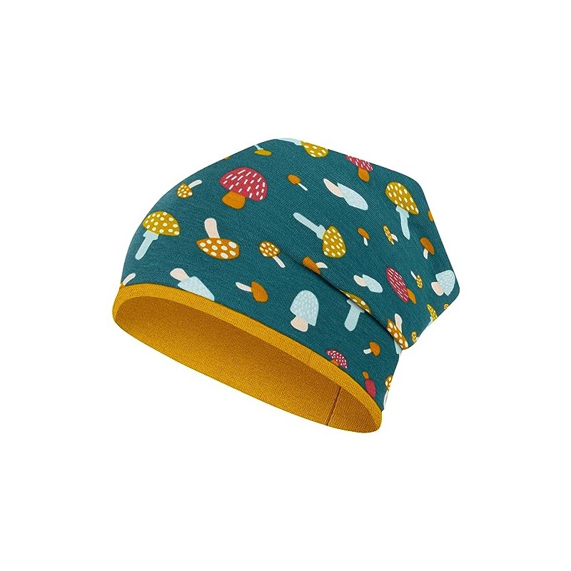 Smarilla Boy's / Girls' Autumn Transition Fabric Beanie Hat All-Over Print, Petrol Mushrooms