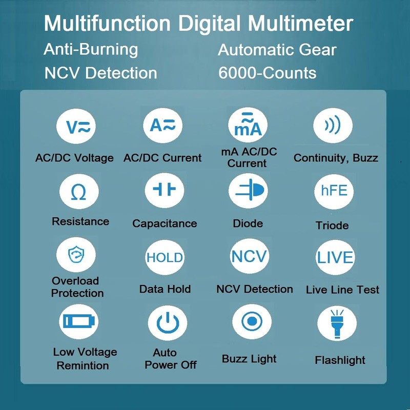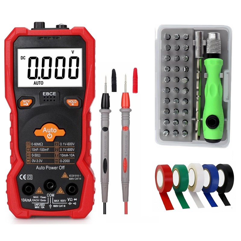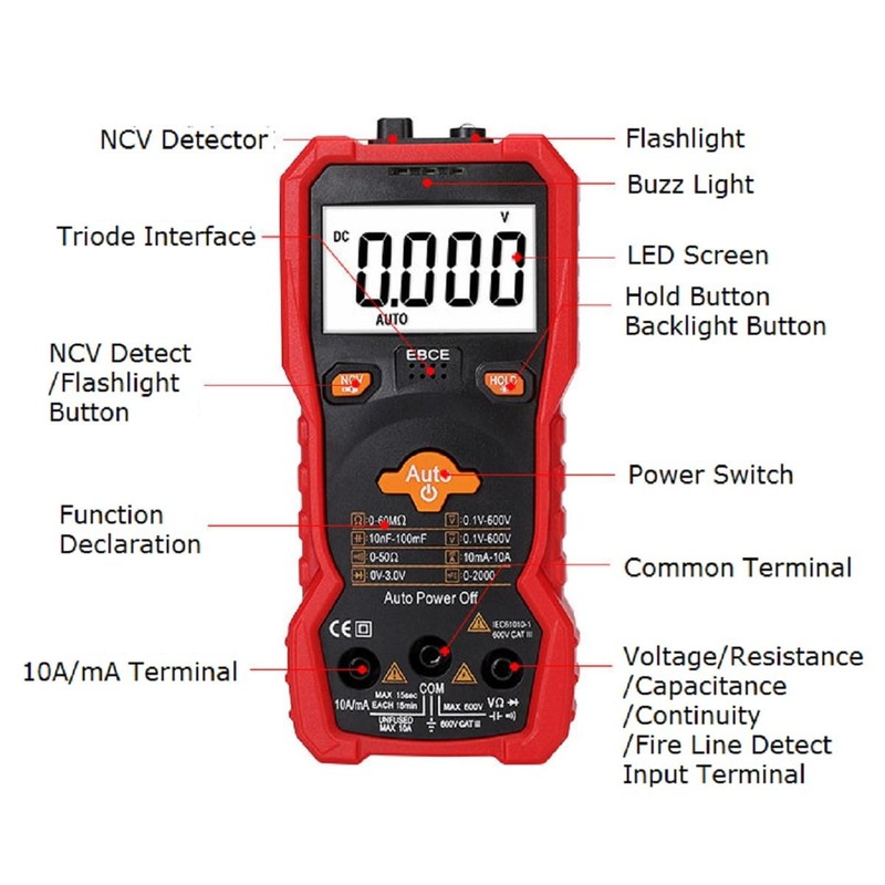 - 【Smart Auto Range Digital Multimeter】Measures up to 600V AC/DC voltage, 10A AC/DC current and 60M Ohms resistance, electrical tester also tests continuity, capacitance, diodes, and triode.