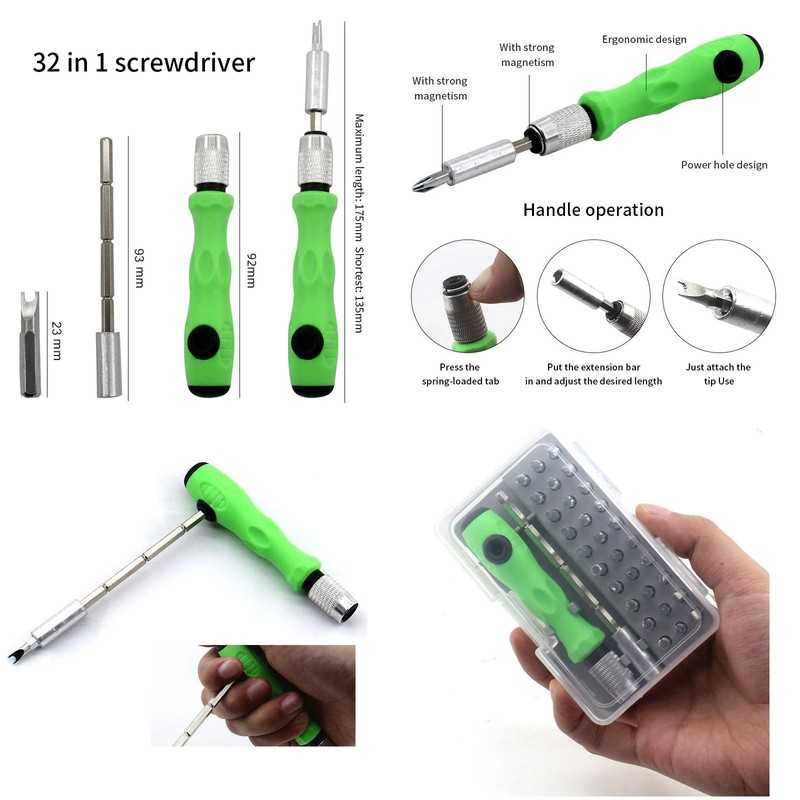 - 【32-in-1 Screwdriver】The 32-in-1 multi-function screwdriver set for disassemble/assemble digital products like mobile phones, notebooks, glasses.