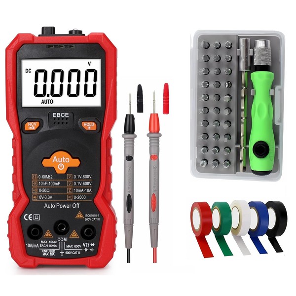 Smart Auto Range Digital Multimeter, Electrical Tester, 6000 Counts,Digital Auto Ranging, Live Wire Test, NCV Detection, Measures AC/DC Voltage, Current, Resistance, Diode, Capacitance (Red)