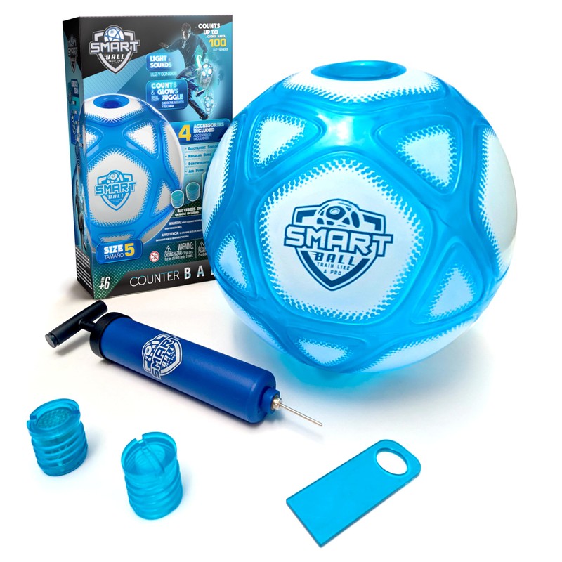 - COMPETITIVE FUN: Perfect for two or more kids to compete and see who can reach 100 kicks without the ball touching the ground. Challenge your friends and improve your skills at the same time! COMPLETE KIT INCLUDES: One deflated size 5 soccer ball Electronic device with sensor, light, and sound (batteries included) Non-electronic device for regular play Inflator Screwdriver tool for device installation and removal