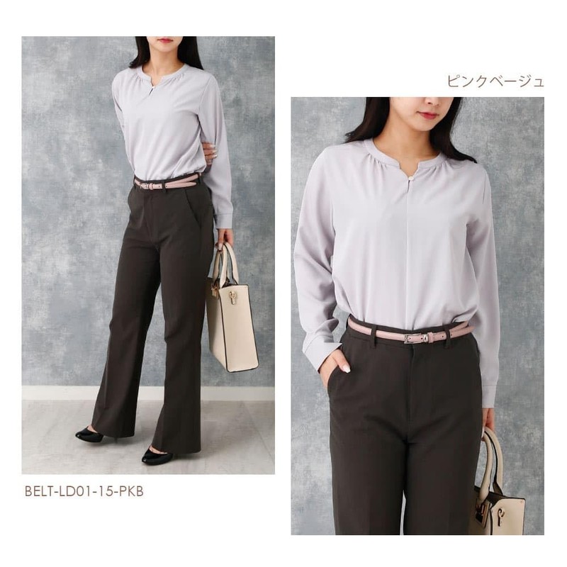 Smart Biz Women's Belt, Genuine Leather, Stylish, Made in Japan, Thin, Slim Suit, Business, White, Black, Gray, 0.6 inches (15 mm), Adjustable, Office, Casual, Perforated, Fashionable, Pink Beige,