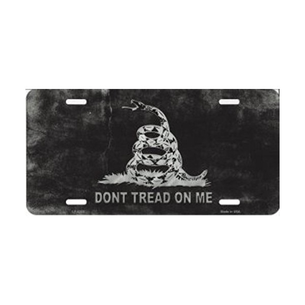 Smart Blonde Gadsden Flag On Black Metal License Plate