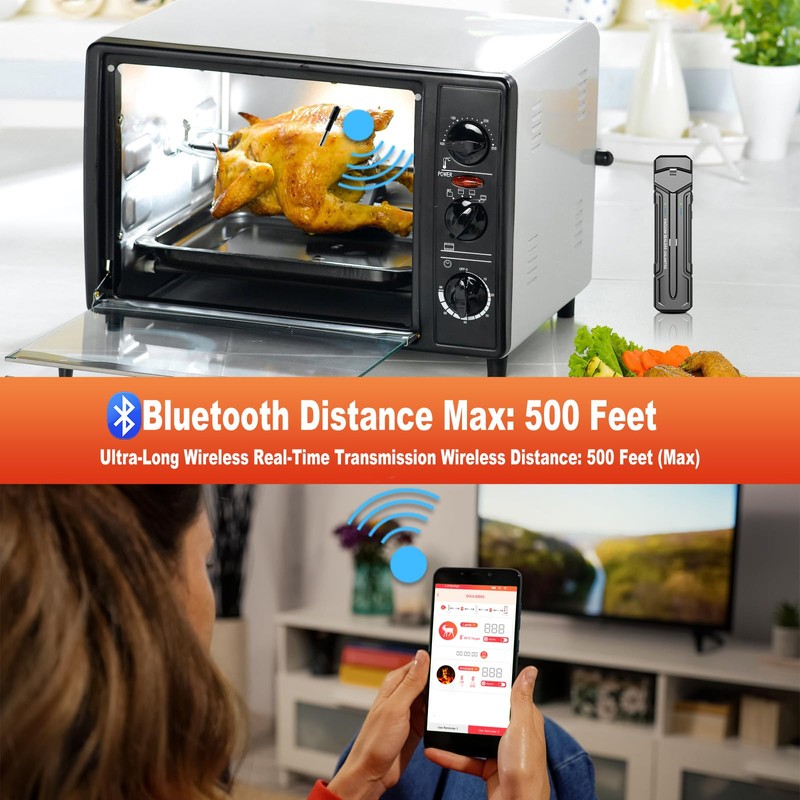 Smart Bluetooth Meat Thermometer, Wireless Grill Thermometer, Digital Food Thermometer for Smoker, Oven, BBQ Steak/Turkey, 500Ft Remote Monitoring Precise Temperature Alerts