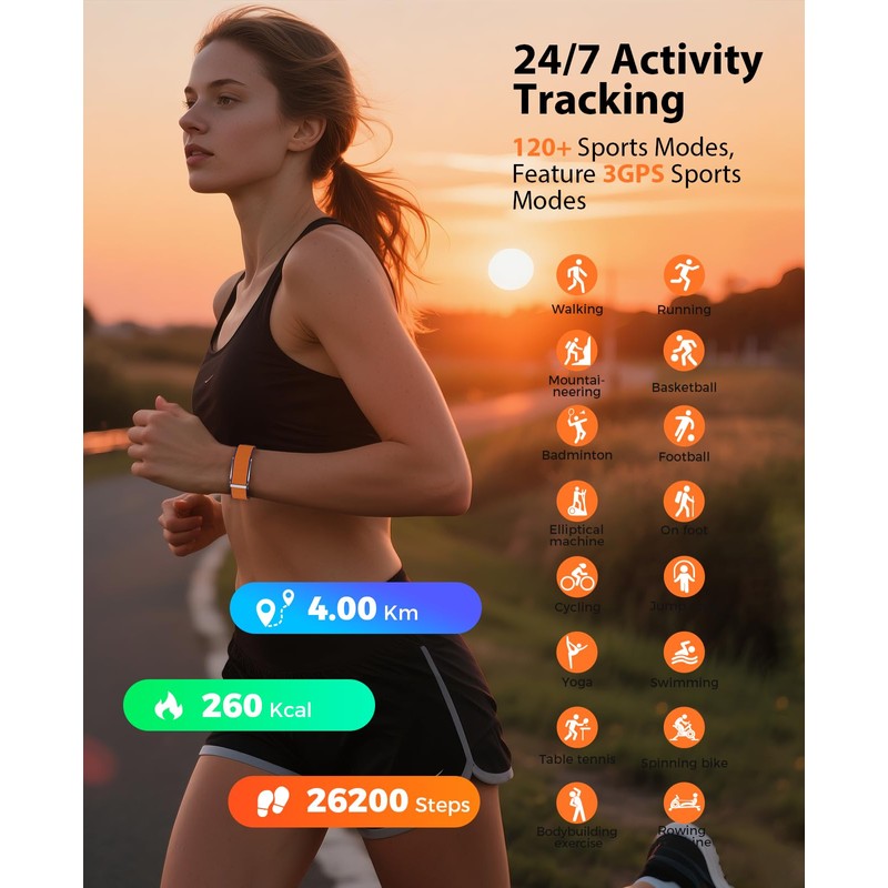 - 【120+ Sports Modes & All-Day Activity Tracking】Fitness tracker bracelet monitor your steps, distance and calories burned all the day to help you achieve your fitness goals more efficiently. Including 120 sports modes like skipping, swimming, yoga, basketball etc., and provides 3 GPS modes specifically for outdoor walking, running and cycling, you can view GPS movement trajectory on the map in real time on the APP.