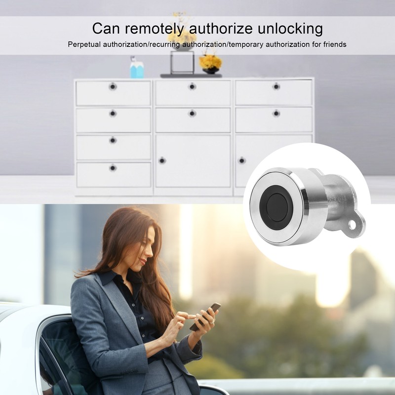 1、Only suitable for triple drawer cabinets, supports two unlocking methods, fingerprint, Bluetooth APP, fingerprint capacity up to 100, which can meet the needs of ordinary families. 2、High‑resolution fingerprint module, fast identification in 0.5 seconds. The unlocking record can be inquired, and the unlocking location can also be inquired if the positioning permission is enabled. 3、It can realize Bluetooth connection to mobile phone to check power, long battery life of 365 days, low power consumption design, no need to charge frequently, USB charging port, convenient and fast. 4、The AI algorithm is more sensitive as it is used. AI learning technology can autonomously perceive changes in fingerprints and maintain sensitivity at all times. Each time the lock is unlocked, the fingerprint information is further improved. The longer it is used, the more sensitive it will be. 5、Can remotely authorize and unlock, and can perform permanent authorization/periodical authorization/temporary authorization for friends.