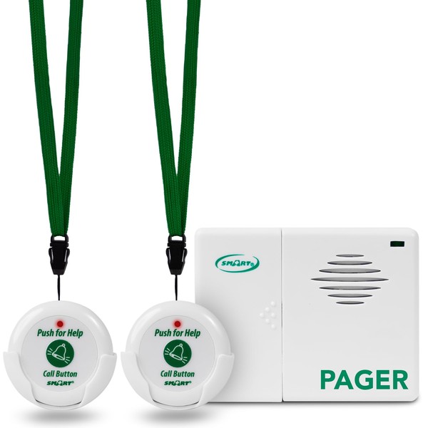 Smart Caregiver Pager System with 2 Call Buttons for Elderly Assistance, Fall Prevention, and Nurse Calling | Wearable Wireless Pager for Patient Help at Home | USA-Based Company and Customer Support
