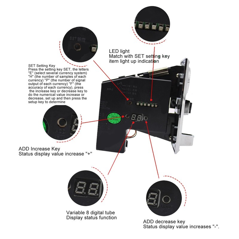 - EASY TO USE: Multi coin acceptor selector is simple and easy to understand, easy to operate, users just need to insert the coins to complete the payment, eliminating the tedious payment steps.