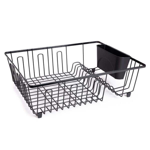 Smart Design Dish Drainer Rack Large -Includes Moveable Cutlery Cup - Black