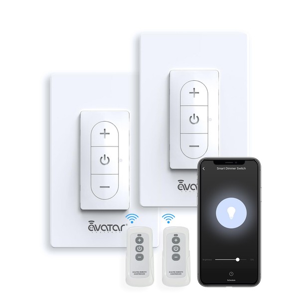 - 【Remote Control & APP Control】FOUR control ways are available for this smart dimmer switch: APP, BT REMOTE CONTROL, VOICE CONTROL and MANUAL. Up to 33ft range, the BT 5.0 remote controller is sensitive and convenient. The smart switch supports the APP of Avatar Controls, Smart Life, Tuya, Alexa, Siri Shortcuts and Google Home.